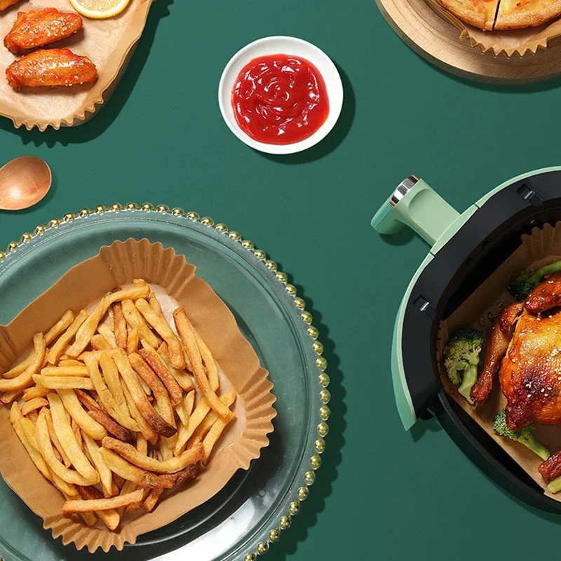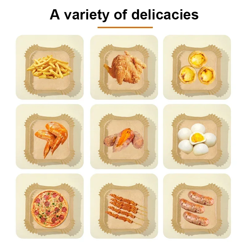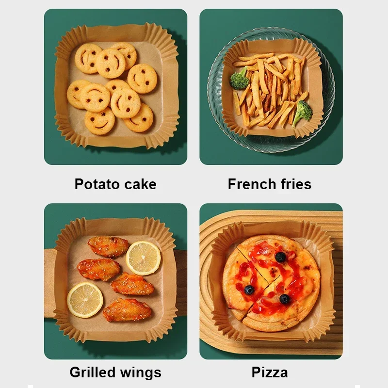 50Pcs Disposable Air Fryer Paper Oil Absorbing And Anti Oil Paper Tray Non Stick Baking Pad Large Toughness Square